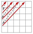 You already know that Sarah loves her squared notebook, right? To pass the time, she began writing ainteger numbers consecutively. However, she found that doing it from left to right and top to bottom was very boring! She therefore decided to fill in the numbers diagonally using the following